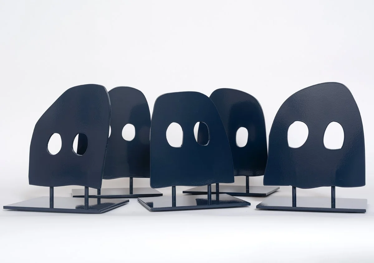 New Windows To The Sky collection for Ghostly featuring a long sleeve tee shirt, crew neck sweatshirt, baseball cap, woven blanket and mug, alongside a series of 5 powder-coated steel sculptures.